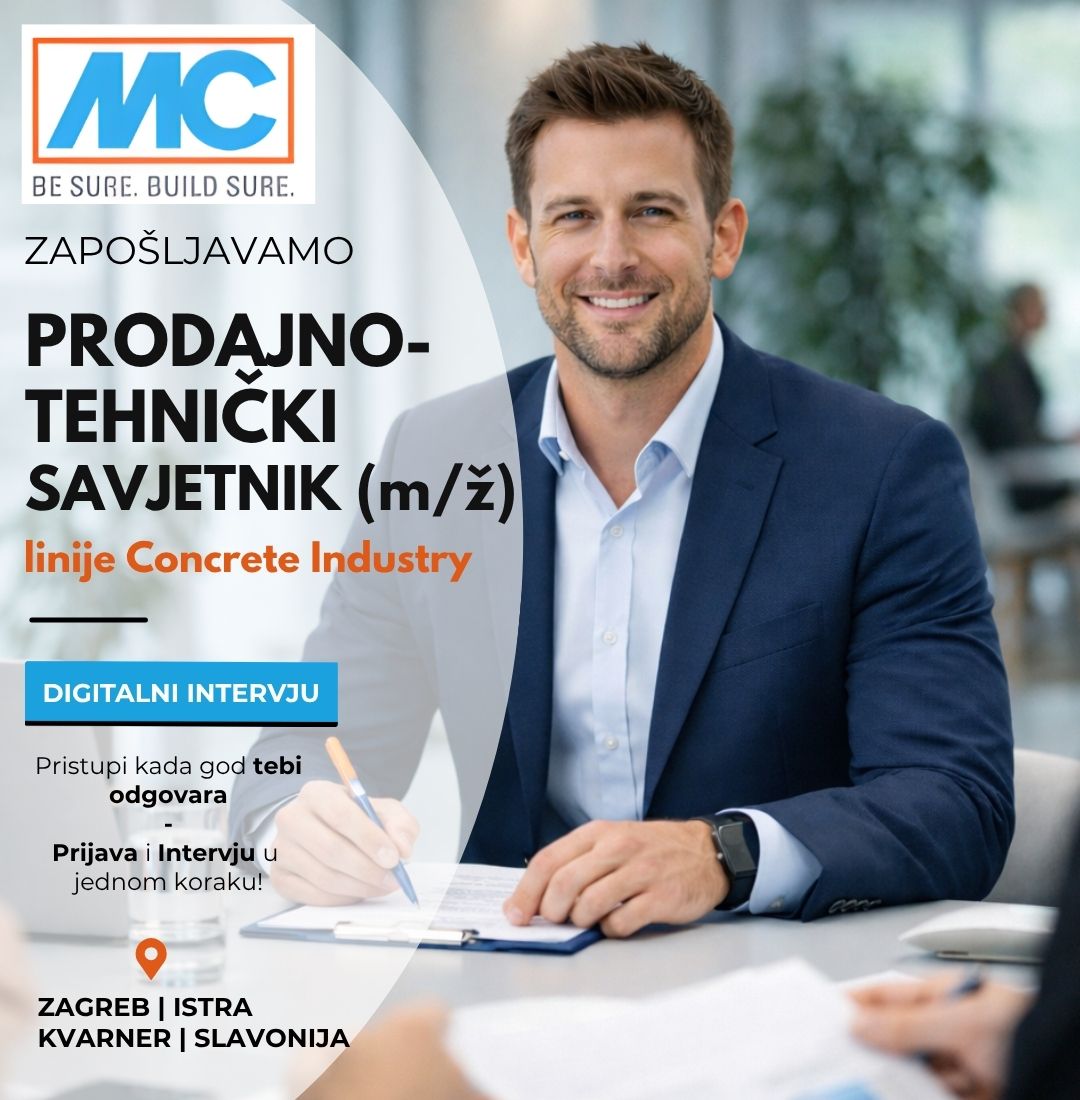 👉KLIKNI OVDJE: Prijava - Prodajno/ tehnički savjetnik linije Concrete Industry (m/ž)